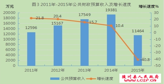 全县财政总收入完成22128万元,下降40.3%。其中增值税1101万元;企业所得税332万元;个人所得税208万元;营业税2471万元;资源税458万元。公共预算财政收入完成11464万元,下降40.8%。公共预算财政支出161123万元,增长11.2%,其中农林水事务支出增长13.5%,教育支出增长7.2%,环境保护支出增长17.5%,科学技术支出增长24.2%,医疗卫生支出增长13.1%,文化体育与传媒支出增长13%,社会保障和就业支出增长30.1%。(见图2、图3)