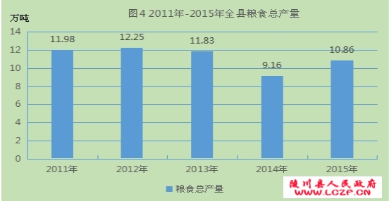 全年粮食总产量达到10.86万吨,增产18.6%。其中,夏粮产量550吨,减产14.3%;秋粮10.8万吨, 增产18.7%。(见图4)