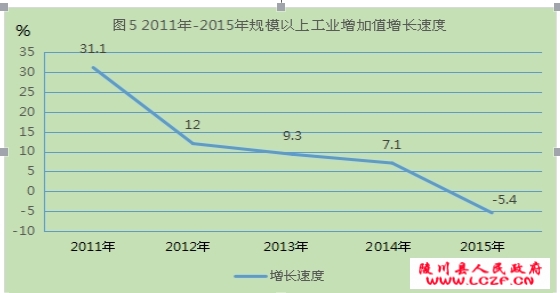 年末全县规模以上工业14个。全年规模以上工业总产值完成91577.1万元,同比下降9%。规模以上工业增加值下降5.4%,其中:国有控股企业下降11.5%,非公有制企业增长10.9%。分轻重工业看,轻工业增长71%,重工业下降11.6%。(见图5)