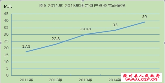 全年固定资产投资完成39亿元,比上年增长18.3%。其中:第一产业89140万元,增长48.8%;第二产业78779万元,增长0.8%;第三产业222572万元,增长16%。(见图6)