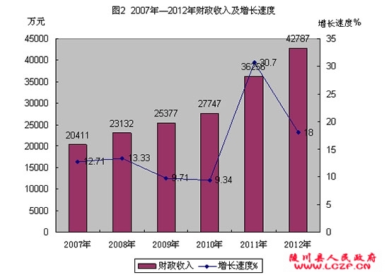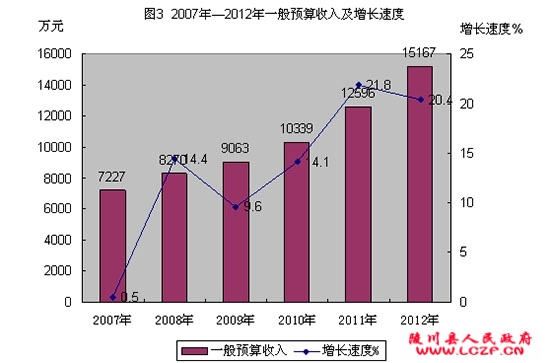全年全县财政总收入42787万元,增长18%,其中增值税完成19627万元,增长16.75%;企业所得税9205万元, 增长18.62%;个人所得税1206万元,增长21.47%;营业税4878万元,增长4.57%;资源税831万元,增长61.99%。公共预算财政收入15167万元,增长20.4%。公共预算财政支出110452万元,增长13.6%,其中农林水事务支出增长27.4%,教育支出增长14.61%,环境保护支出增长137.85%,科学技术支出增长19.13%,医疗卫生支出增长12.98%,文化体育与传媒支出增长32.88%,社会保障和就业支出增长1%。(见图2、图3)