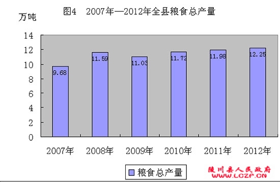 全年粮食总产量12.25万吨,增产2.27%;其中,夏粮产量1047吨,减产29.6%;秋粮12.15万吨,增产2.7%。