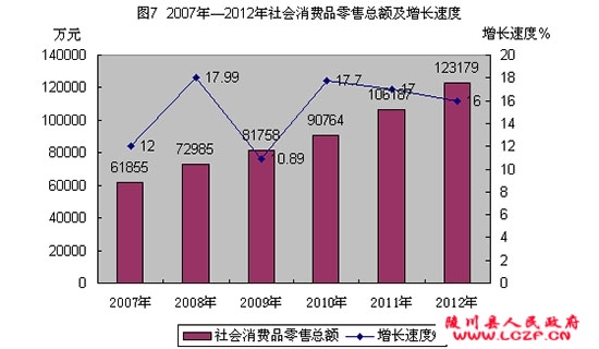 全年社会消费品零售总额123179.4万元,增长16%。分地域看,城镇81871.3万元,增长16.5 %;乡村41308.1万元,增长15%。