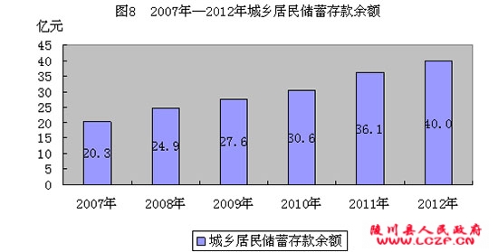年末全县金融机构各项存款余额673927万元,比年初增加37370万元,增长5.87%。其中:城乡居民储蓄存款余额400186万元, 比年初增加39640万元,增长10.99%。各项贷款余额263376万元,比年初增加99145万元,增长60.37%。(见表2、图8)