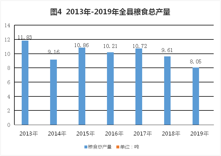全年粮食总产量达到80519.2吨,减产16.24%。其中,夏粮产量378.9吨,增产48.18%;秋粮80140.3吨,减产16.41%。(见图4)
