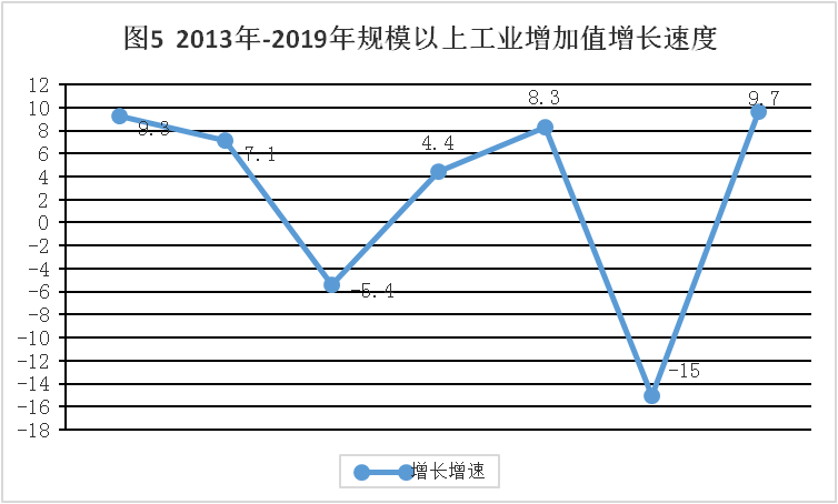 年末全县规模以上工业15个,当年培育“小升规”企业数量4个,净增2个。全年规模以上工业增加值增长9.7%,其中:国有控股企业增长11.1%,非公有制企业下降6.5%;分轻重工业看,轻工业下降6.7%,重工业增长10.1%。(见图5)