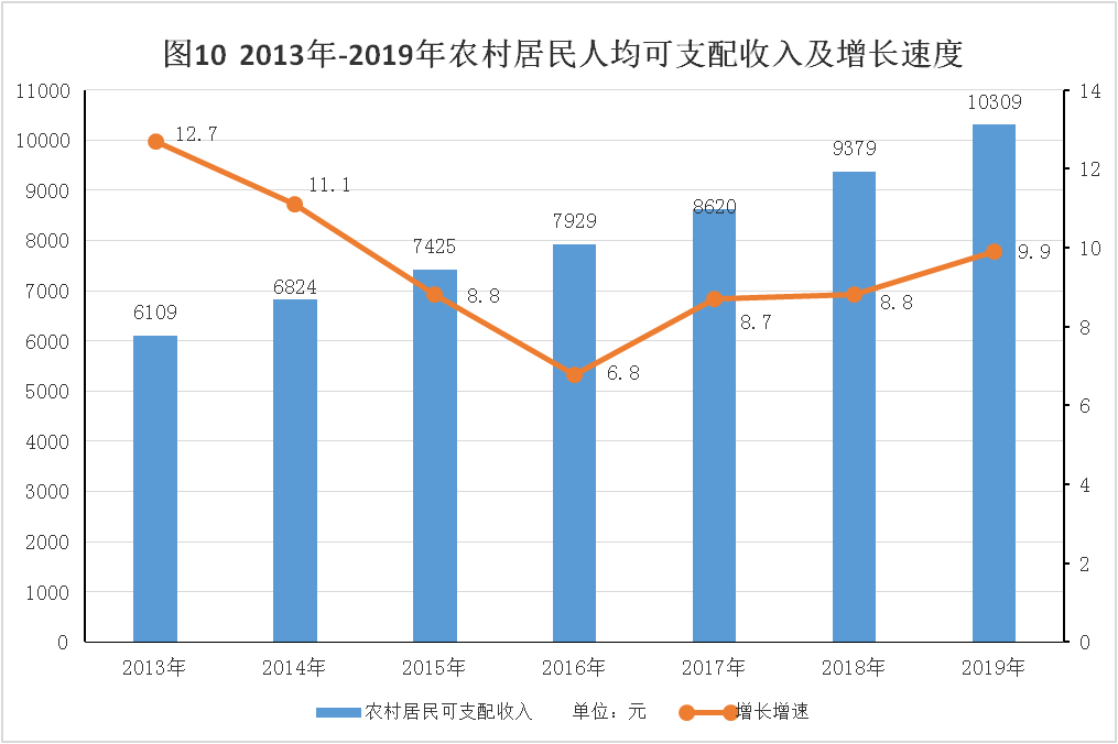 (注:按照国家统计方法制度部署,2013年国家统计局实行城乡住户调查一体化改革,农民人均纯收入改为农村居民人均可支配收入。)