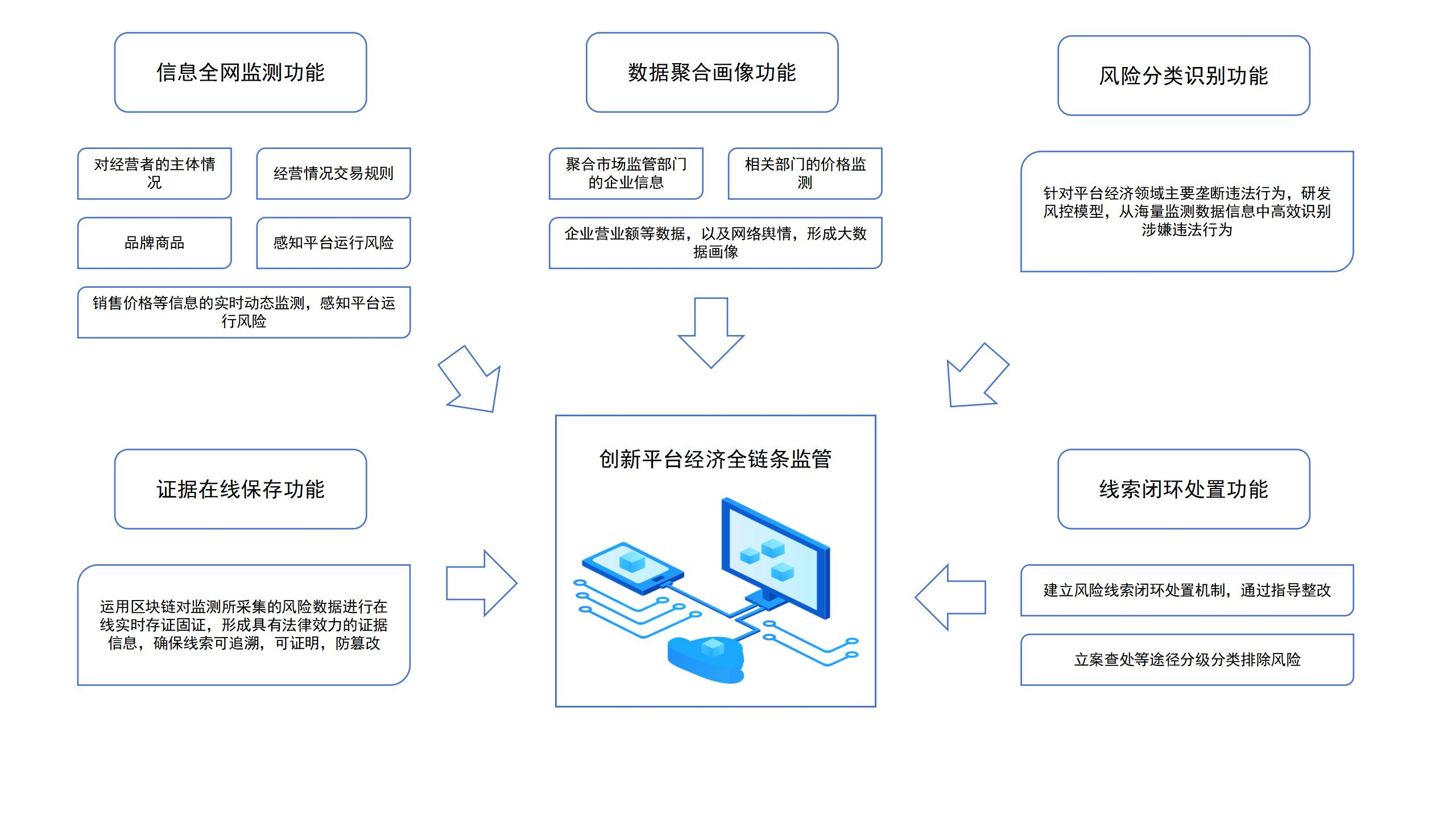 (二)技术创新。充分运用大数据、云计算、人工智能等互联网技术,通过创新数据抓取、模型运算、智能分析、综合研判等手段方法,对重点平台、行为和风险等实施广覆盖、全天候、多方位的监测、感知、分析和预警,平台经济监管实现从静态到动态、从被动到主动、从事后向事前事中的有力转变。
